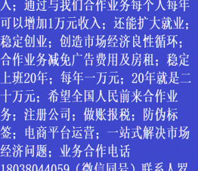 人進(jìn)寶城全國招商;合作業(yè)務(wù)減免廣告費(fèi)用;歡迎全國涉稅企業(yè)前來合作;業(yè)務(wù)合作電話 18038044059 聯(lián)系人羅廷剛